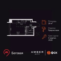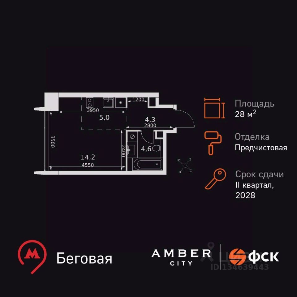 Продаётся квартира-студия номер 643 общей площадью 28.1 кв.м. на 2-м этаже 57 этажного здания. Отделка Whitebox. Цена с учётом скидки.