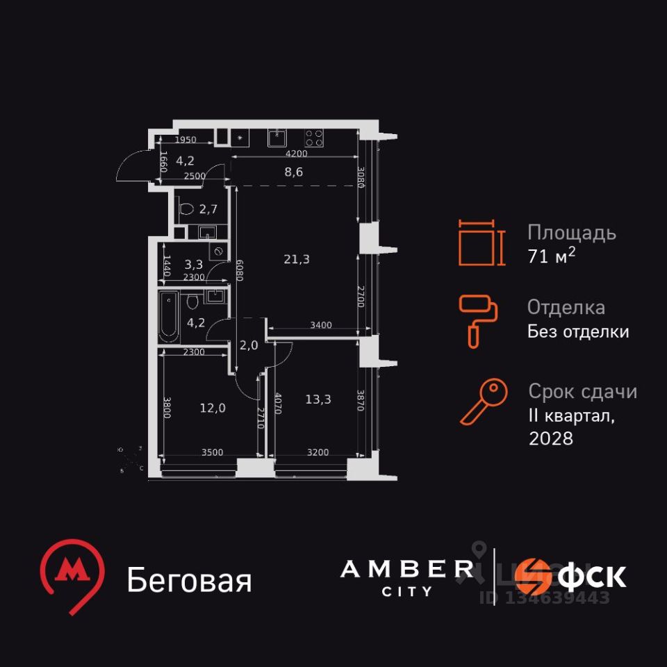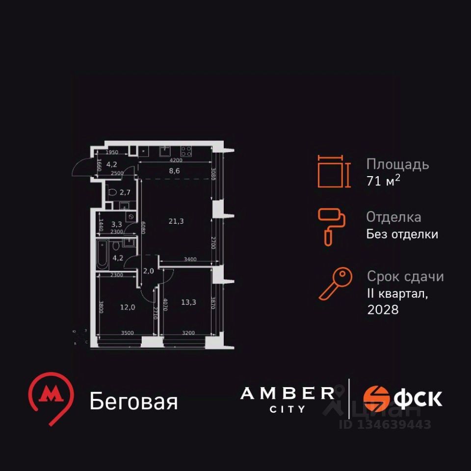Продаётся 3-к квартира номер 949 общей площадью 71.6 кв.м. на 26-м этаже 57 этажного здания. Без отделки. Цена с учётом скидки.