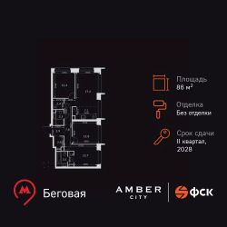 Продаётся 4-к квартира номер 961 общей площадью 86.7 кв.м. на 26-м этаже 57 этажного здания. Без отделки. Цена с учётом скидки.