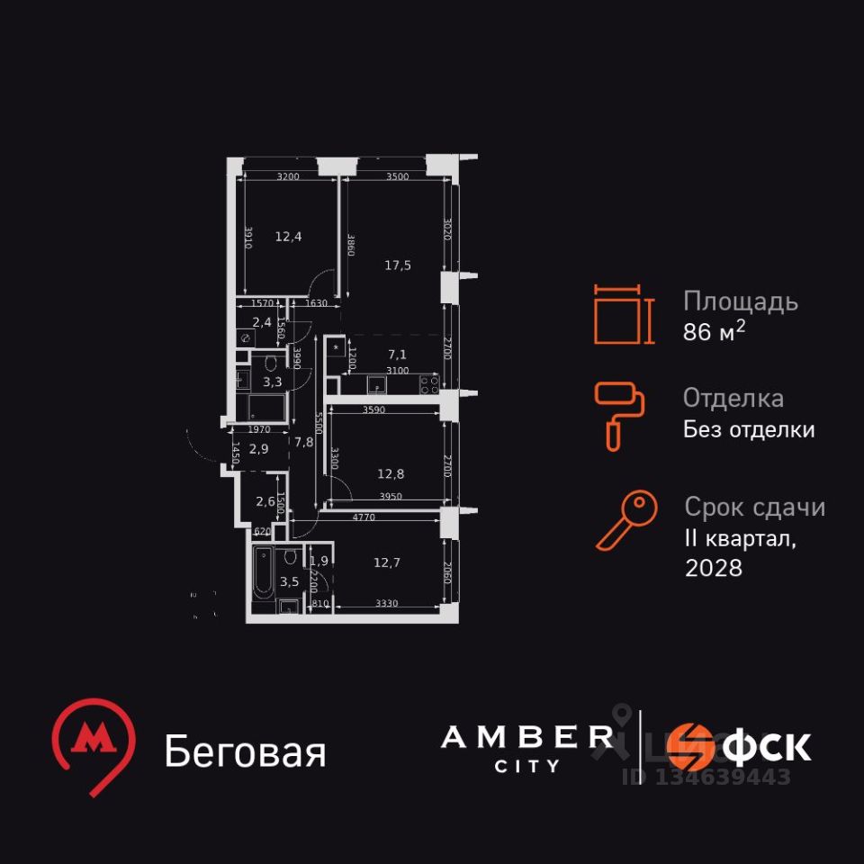 Продаётся 4-к квартира номер 1130 общей площадью 86.9 кв.м. на 39-м этаже 57 этажного здания. Без отделки. Цена с учётом скидки.