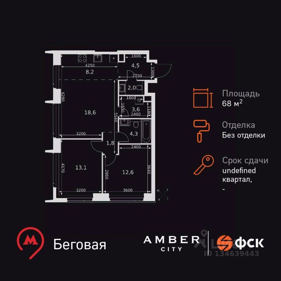 Продаётся 3-к квартира номер 1136 общей площадью 68.7 кв.м. на 40-м этаже 57 этажного дома. Без отделки. Цена с учётом скидки!