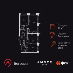 Продаётся 4-к квартира номер 1104 общей площадью 86.9 кв.м. на 37-м этаже 57 этажного здания. Без отделки. Цена с учётом скидки.