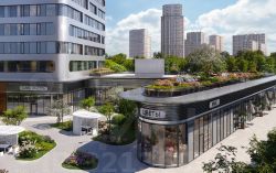 Дополнительные пространства для отдыха будут размещены в закрытых зеленых дворах на стилобате. Здесь будут расположены детские площадки с песочницами, тактильными дорожками, каруселями и природными игровыми элементами. Те, кто привык работать и отдыхать с комфортом, по дос