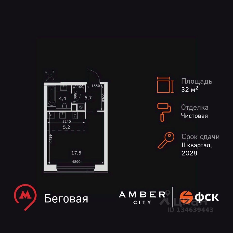 Продаётся квартира-студия номер 1028 общей площадью 32.8 кв.м. на 32-м этаже 57 этажного здания. Чистовая отделка. Цена с учётом скидки.