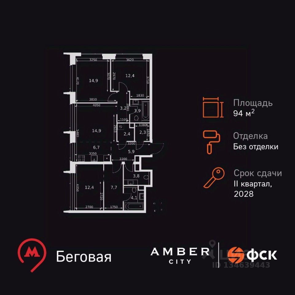 Продаётся 4-к квартира номер 1238 общей площадью 94.6 кв.м. на 48-м этаже 57 этажного здания. Без отделки. Цена с учётом скидки.