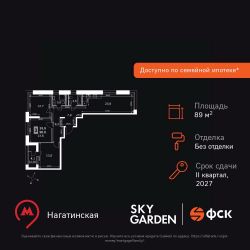 Продаётся 3-к квартира номер 25 общей площадью 89.4 кв.м. на 5-м этаже 29 этажного здания. Без отделки. Цена с учётом скидки.