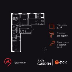 Продаётся 3-к квартира номер 104 общей площадью 87.7 кв.м. на 14-м этаже 29 этажного дома. Без отделки. Цена с учётом скидки!