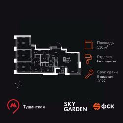 Продаётся 3-к квартира номер 246 общей площадью 116.3 кв.м. на 5-м этаже 44 этажного здания. Без отделки. Цена с учётом скидки.