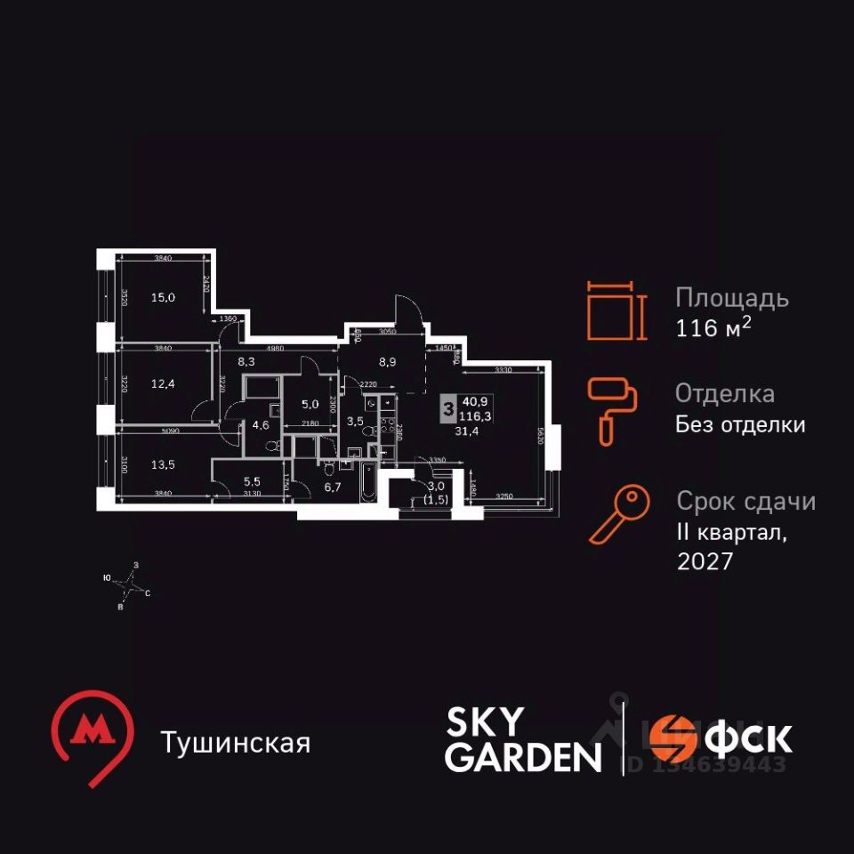 Продаётся 3-к квартира номер 316 общей площадью 116.3 кв.м. на 15-м этаже 44 этажного здания. Без отделки. Цена с учётом скидки.