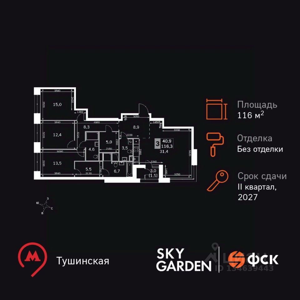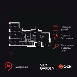 Продаётся 3-к квартира номер 330 общей площадью 116.3 кв.м. на 17-м этаже 44 этажного здания. Без отделки. Цена с учётом скидки.