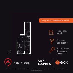 Продаётся 2-к квартира номер 273 общей площадью 76.4 кв.м. на 8-м этаже 44 этажного здания. Без отделки. Цена с учётом скидки.