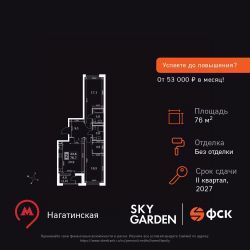 Продаётся 2-к квартира номер 441 общей площадью 76.7 кв.м. на 32-м этаже 44 этажного здания. Без отделки. Цена с учётом скидки.