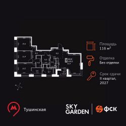 Продаётся 3-к квартира номер 491 общей площадью 116.3 кв.м. на 40-м этаже 44 этажного здания. Без отделки. Цена с учётом скидки.