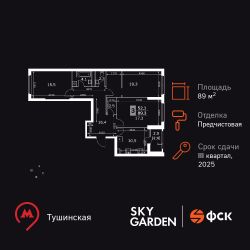 Продаётся 3-к квартира номер 638 общей площадью 89.3 кв.м. на 4-м этаже 43 этажного здания. Отделка Whitebox. Цена с учётом скидки.