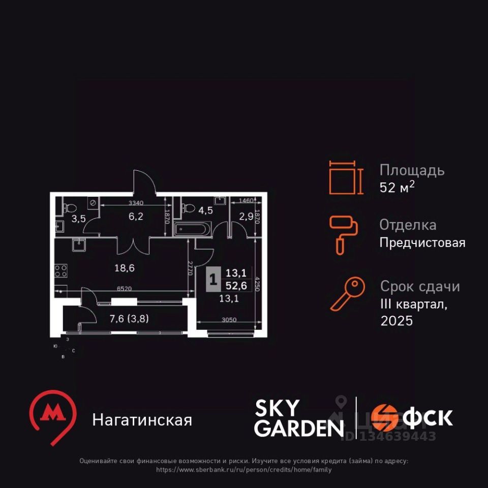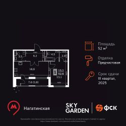 Продаётся 2-к квартира номер 975 общей площадью 51.4 кв.м. на 41-м этаже 43 этажного здания. Отделка Whitebox. Цена с учётом скидки.