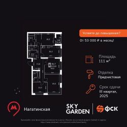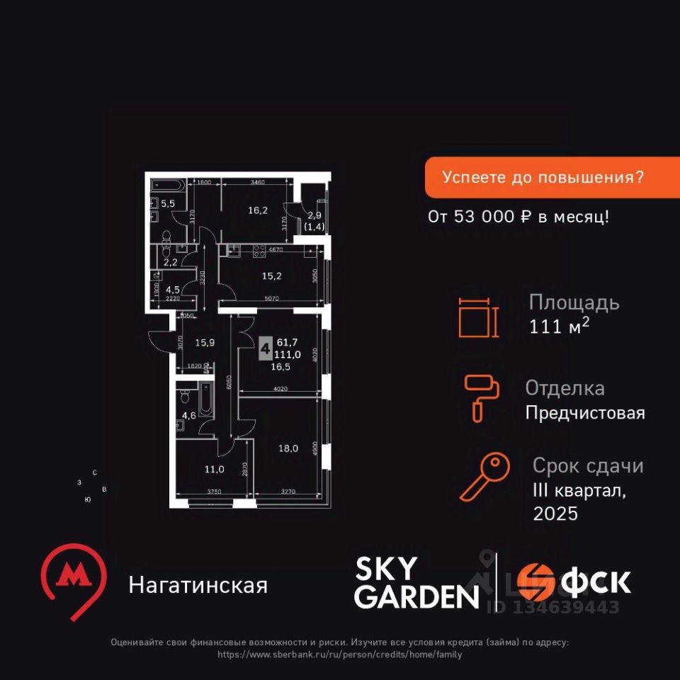 Продаётся 4-к квартира номер 1215 общей площадью 111 кв.м. на 4-м этаже 30 этажного здания. Отделка Whitebox. Цена с учётом скидки.