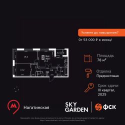 Продаётся 3-к квартира номер 1274 общей площадью 78.9 кв.м. на 15-м этаже 30 этажного здания. Отделка Whitebox. Цена с учётом скидки.