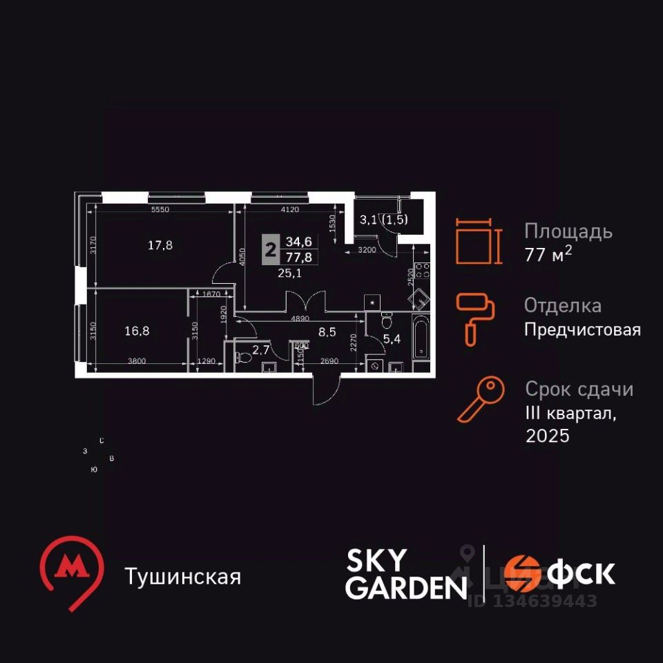 Всего в 12 минутах пешком до м. Тушинская и 15 минутах до станции Тушинская МЦД. На автомобиле: 2 км до Волоколамского шоссе, 2,5 км до МКАД и 15 км до Садового кольца