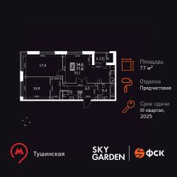 Продаётся 3-к квартира номер 1334 общей площадью 77.8 кв.м. на 27-м этаже 30 этажного дома. Отделка Whitebox. Цена с учётом скидки!