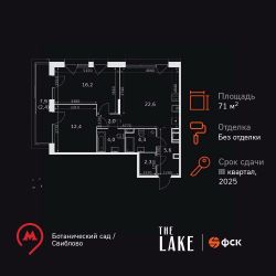 Продаётся 2-к квартира номер 52 общей площадью 71.8 кв.м. на 9-м этаже 16 этажного здания. Без отделки. Цена с учётом скидки.