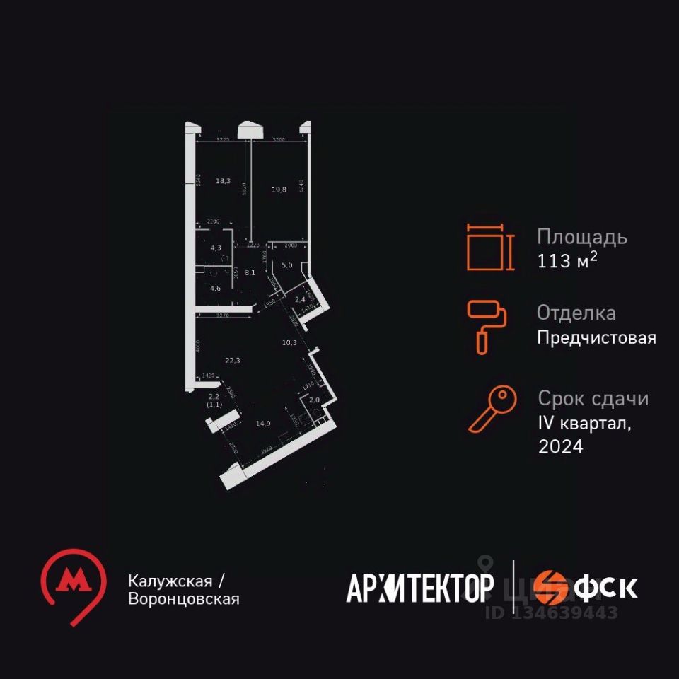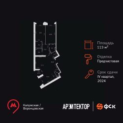 Продаётся 3-к квартира номер 1073 общей площадью 113 кв.м. на 5-м этаже 47 этажного здания. Отделка Whitebox. Цена с учётом скидки.
