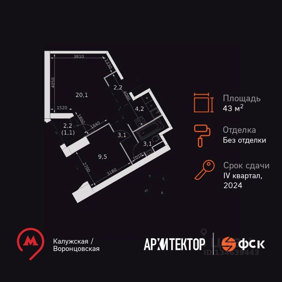 Продаётся 2-к квартира номер 1227 общей площадью 43.3 кв.м. на 38-м этаже 47 этажного здания. Без отделки. Цена с учётом скидки.