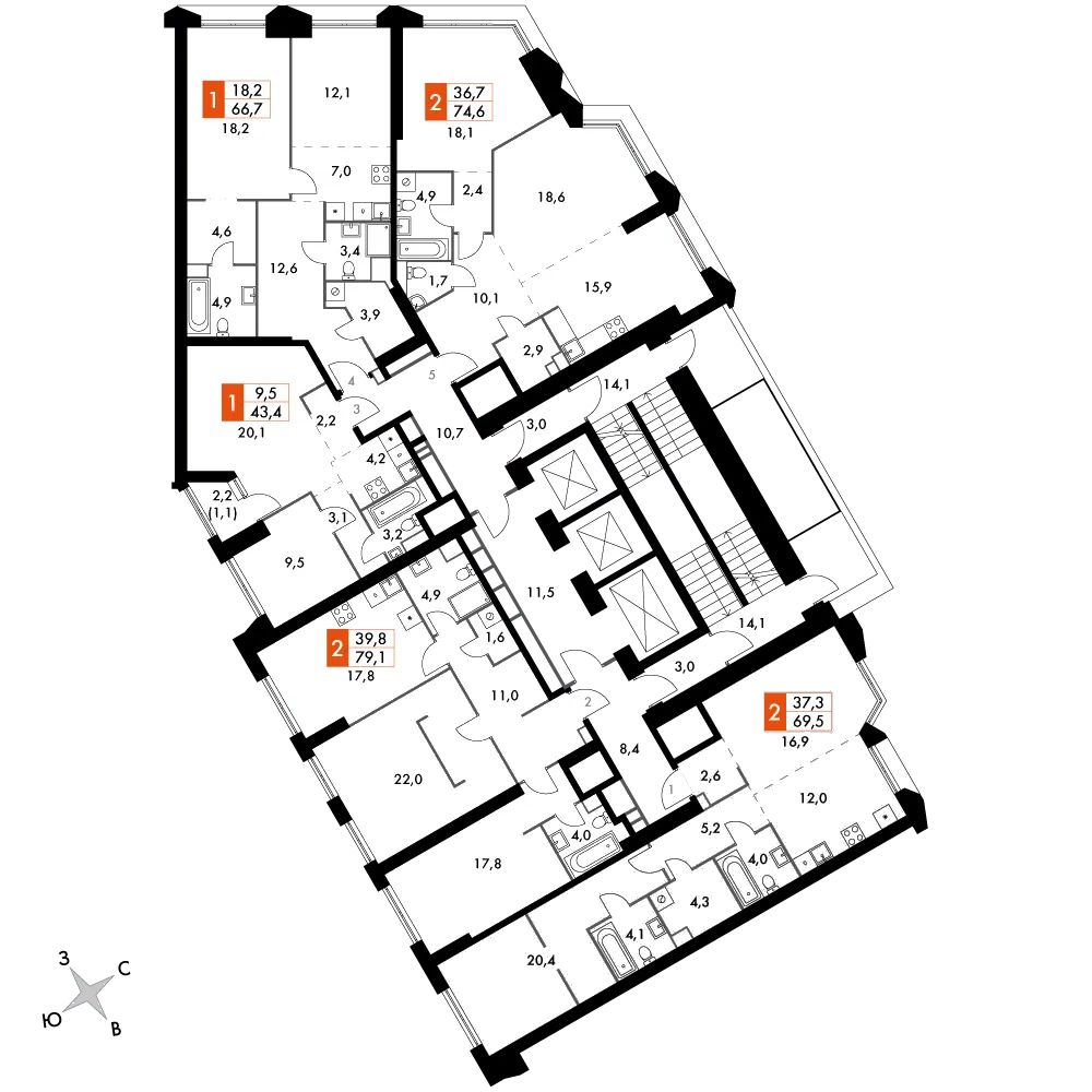 Продаётся 3-к квартира номер 1271 общей площадью 79.1 кв.м. на 47-м этаже 47 этажного дома. Без отделки. Цена с учётом скидки!