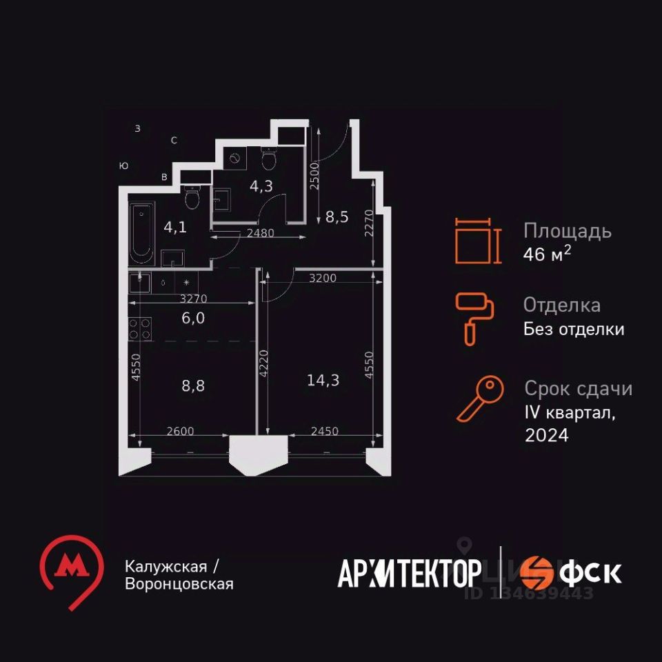 Продаётся 2-к квартира номер 1464 общей площадью 46 кв.м. на 40-м этаже 47 этажного дома. Без отделки. Цена с учётом скидки!