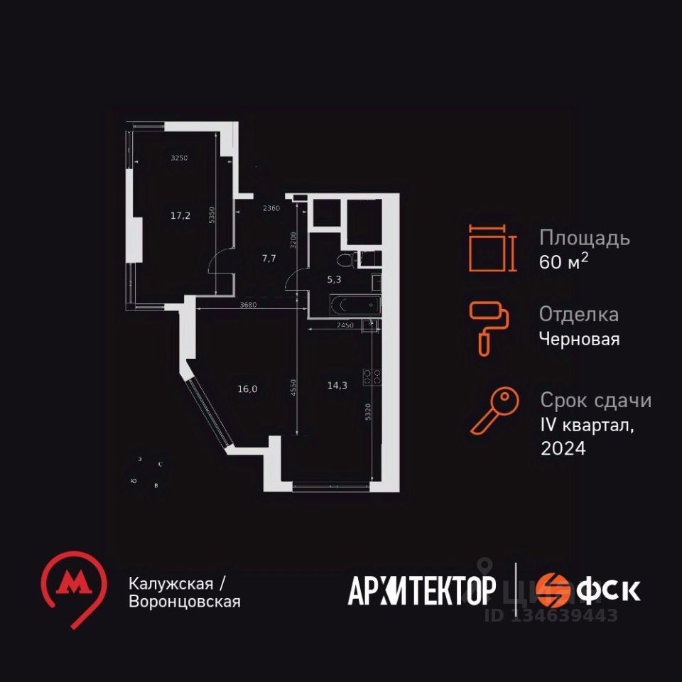 Продаётся 2-к квартира номер 1011 общей площадью 60.5 кв.м. на 35-м этаже 47 этажного дома. Отделка Whitebox. Цена с учётом скидки!