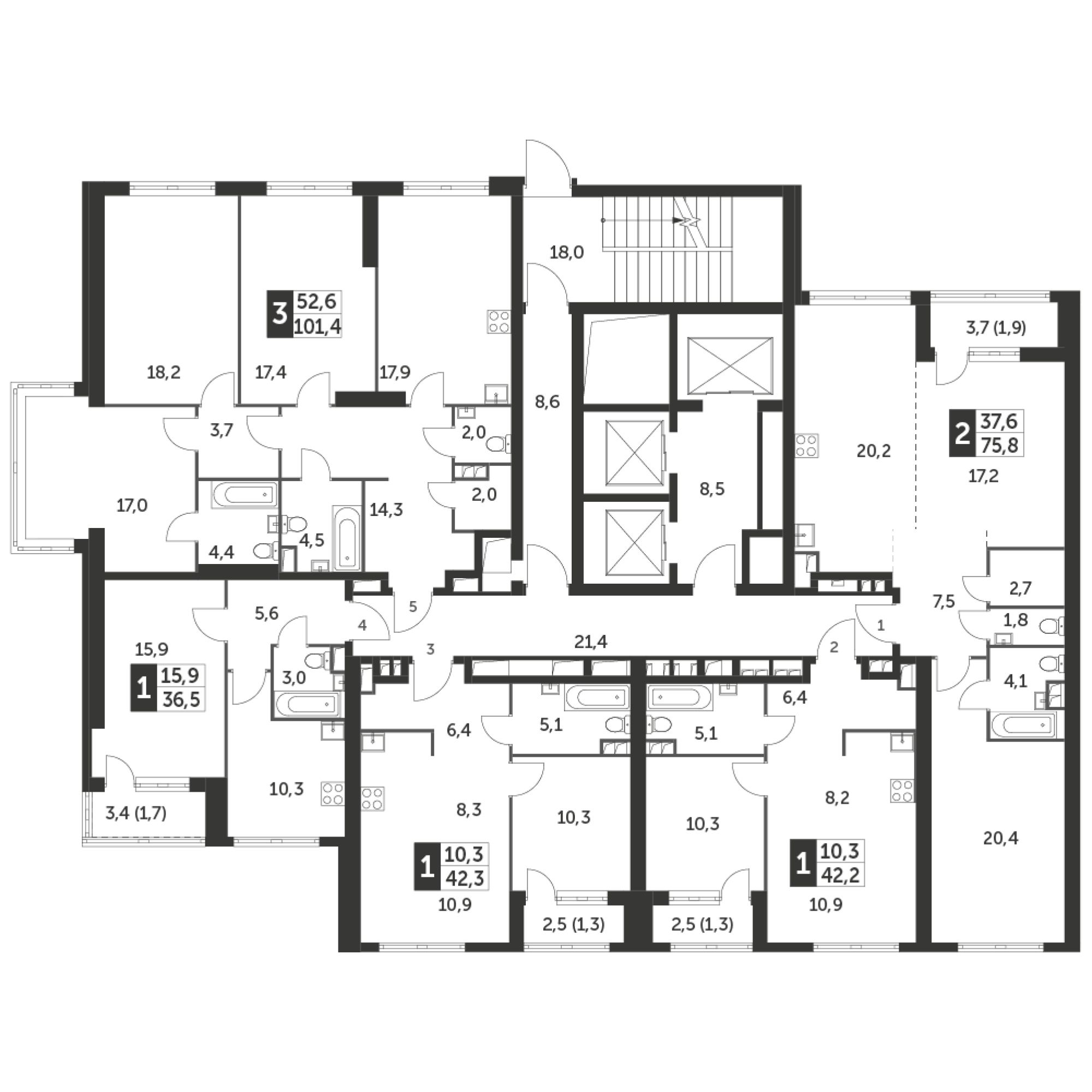 Продаётся 3-к квартира номер 444 общей площадью 101.4 кв.м. на 2-м этаже 28 этажного дома. Отделка Whitebox. Цена с учётом скидки!