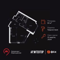 Продаётся 2-к квартира номер 358 общей площадью 60.8 кв.м. на 30-м этаже 46 этажного здания. Отделка Whitebox. Цена с учётом скидки.