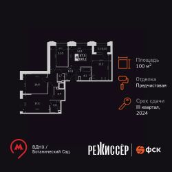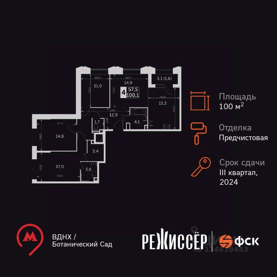 Продаётся 4-к квартира номер 788 общей площадью 100.1 кв.м. на 30-м этаже 38 этажного здания. Отделка Whitebox. Цена с учётом скидки.