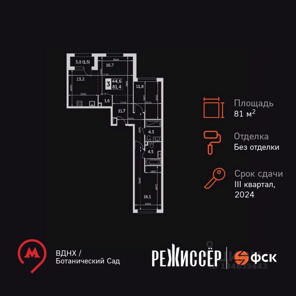 Продаётся 3-к квартира номер 809 общей площадью 81.4 кв.м. на 36-м этаже 38 этажного здания. Без отделки. Цена с учётом скидки.