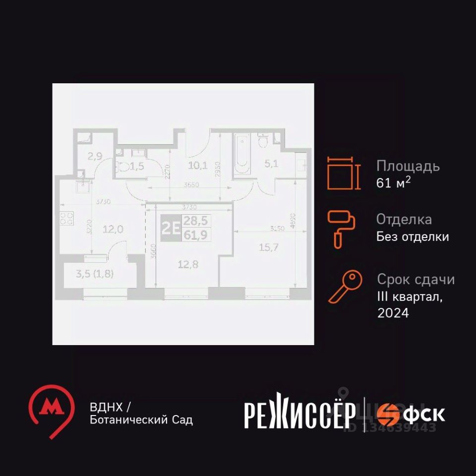 Продаётся 2-к квартира номер 624 общей площадью 61.9 кв.м. на 40-м этаже 48 этажного дома. Без отделки. Цена с учётом скидки!