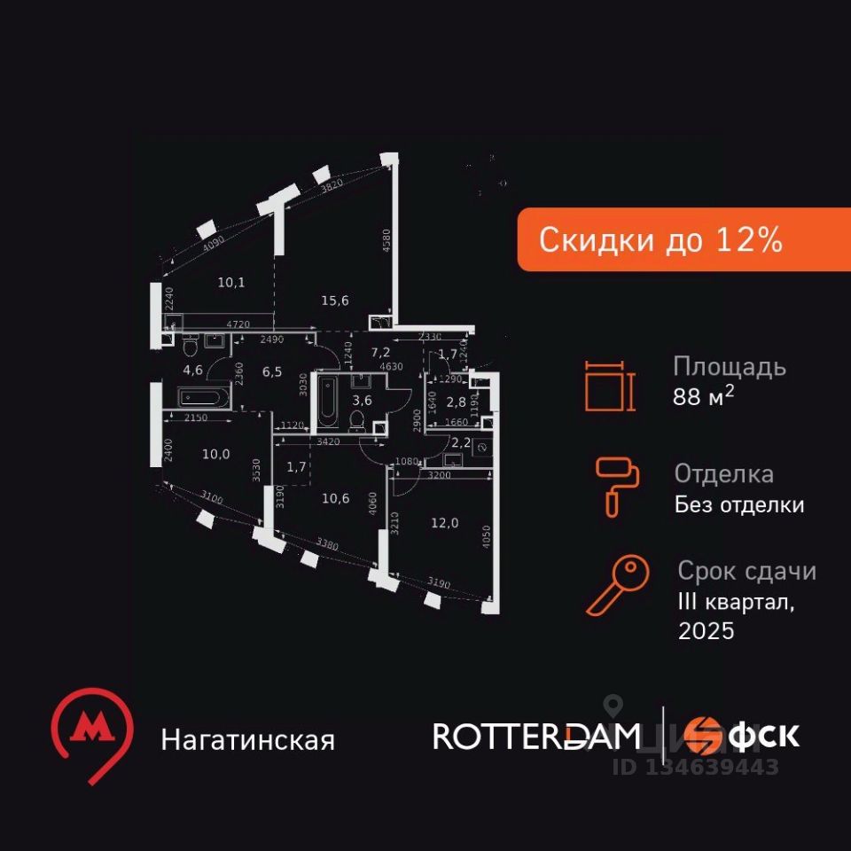 Продаётся 4-к квартира номер 236 общей площадью 88.6 кв.м. на 6-м этаже 28 этажного здания. Без отделки. Цена с учётом скидки.