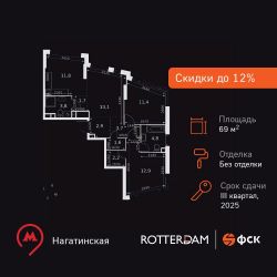Продаётся 3-к квартира номер 260 общей площадью 69.9 кв.м. на 9-м этаже 28 этажного здания. Без отделки. Цена с учётом скидки.