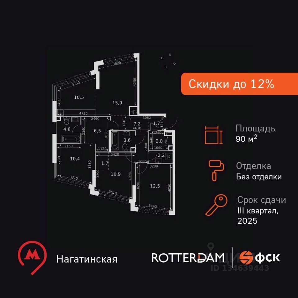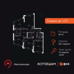 Продаётся 4-к квартира номер 299 общей площадью 90.5 кв.м. на 15-м этаже 28 этажного здания. Без отделки. Цена с учётом скидки.