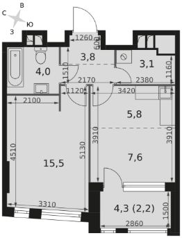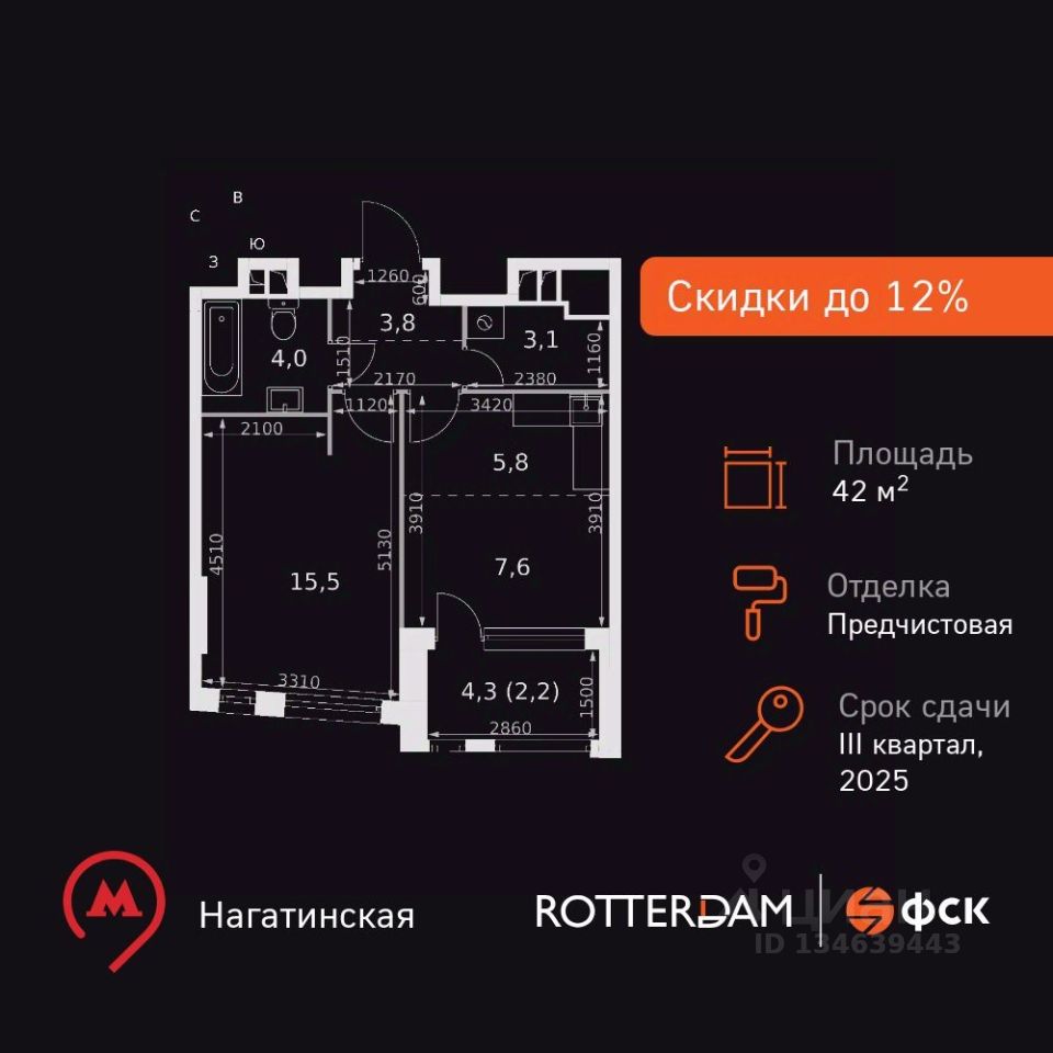 Продаётся 1-к квартира номер 347 общей площадью 42 кв.м. на 22-м этаже 28 этажного здания. Отделка Whitebox. Цена с учётом скидки.