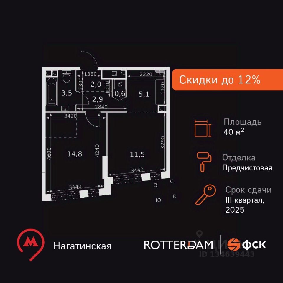 Продаётся 1-к квартира номер 17 общей площадью 40.4 кв.м. на 4-м этаже 29 этажного здания. Отделка Whitebox. Цена с учётом скидки.