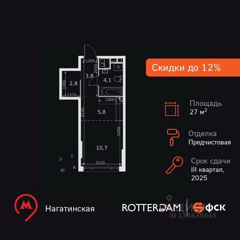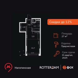Продаётся квартира-студия номер 127 общей площадью 27.2 кв.м. на 18-м этаже 29 этажного здания. Отделка Whitebox. Цена с учётом скидки.