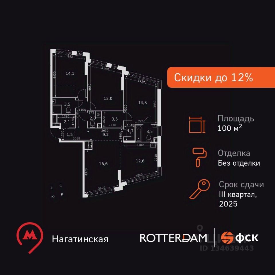 Продаётся 4-к квартира номер 139 общей площадью 100.1 кв.м. на 20-м этаже 29 этажного здания. Без отделки. Цена с учётом скидки.