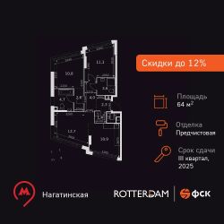Продаётся 3-к квартира номер 178 общей площадью 64.1 кв.м. на 25-м этаже 29 этажного дома. Отделка Whitebox. Цена с учётом скидки!