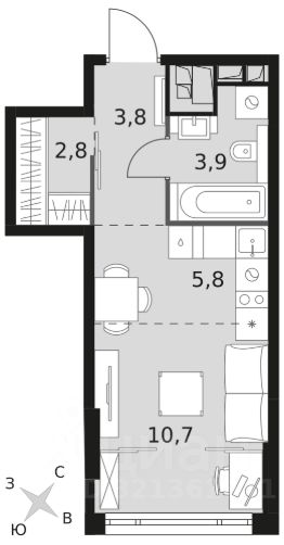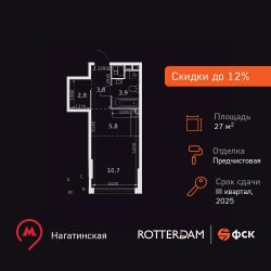 Продаётся квартира-студия номер 190 общей площадью 27 кв.м. на 27-м этаже 29 этажного здания. Отделка Whitebox. Цена с учётом скидки.
