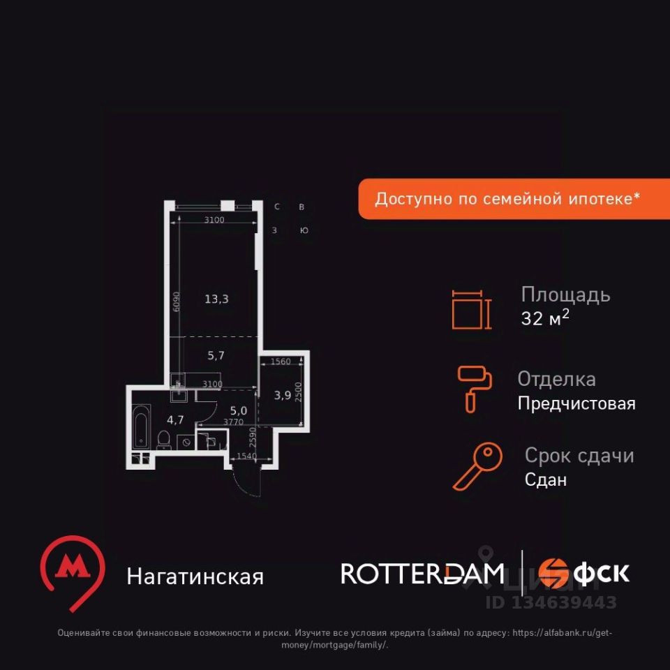 Продаётся квартира-студия номер 499 общей площадью 32.6 кв.м. на 15-м этаже 29 этажного здания. Отделка Whitebox. Цена с учётом скидки.