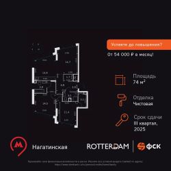 Продаётся 3-к квартира номер 512 общей площадью 74.9 кв.м. на 17-м этаже 29 этажного здания. Чистовая отделка. Цена с учётом скидки.