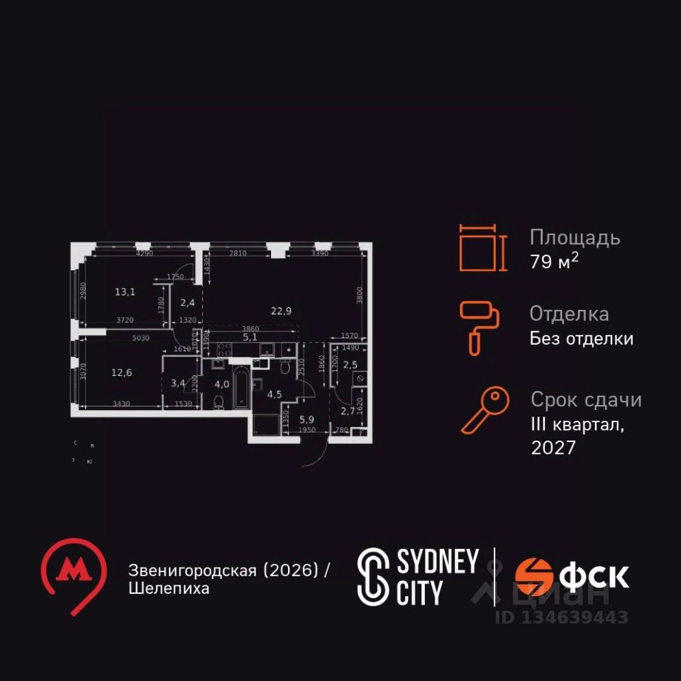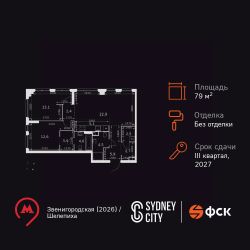 Продаётся 3-к квартира номер 8 общей площадью 79.1 кв.м. на 2-м этаже 28 этажного здания. Без отделки. Цена с учётом скидки.