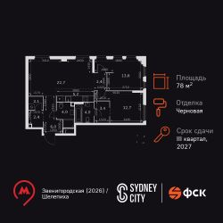 Продаётся 3-к квартира номер 113 общей площадью 78.5 кв.м. на 16-м этаже 28 этажного дома. Отделка Whitebox. Цена с учётом скидки!