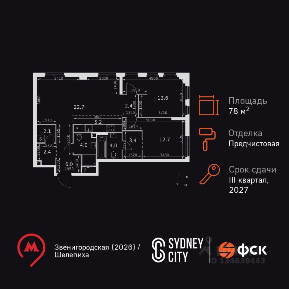 Продаётся 3-к квартира номер 113 общей площадью 78.5 кв.м. на 16-м этаже 28 этажного здания. Отделка Whitebox. Цена с учётом скидки.