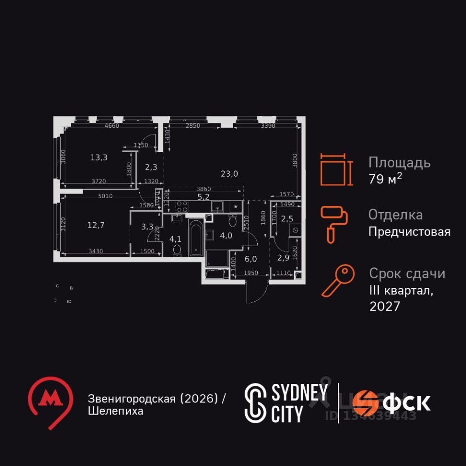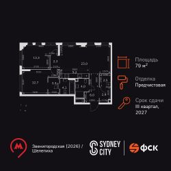 Продаётся 3-к квартира номер 128 общей площадью 79.3 кв.м. на 17-м этаже 28 этажного здания. Отделка Whitebox. Цена с учётом скидки.