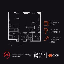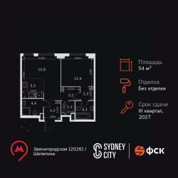 Продаётся 2-к квартира номер 462 общей площадью 54.4 кв.м. на 2-м этаже 42 этажного здания. Без отделки. Цена с учётом скидки.